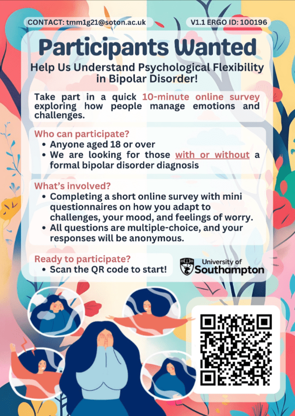 You are invited to participate if you are aged 18 years or over and have been formally diagnosed with bipolar disorder by a mental health professional.